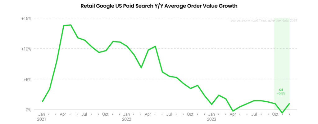 From the beginning of November through the end of December 2023, Google search AOV was roughly flat year over year, compared to low to mid-single-digit growth in 2022 and double-digit growth in 2021. For the full fourth quarter, Google search ad AOVs averaged just 1% growth.