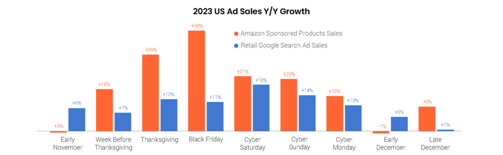Although both Google search and Amazon Sponsored Products ads saw 17% advertiser spending growth over Q4 2023, consumer demand growth varied considerably from that level for each platform throughout the quarter, with brands seeing the strongest sales results in November before a cooldown in December.