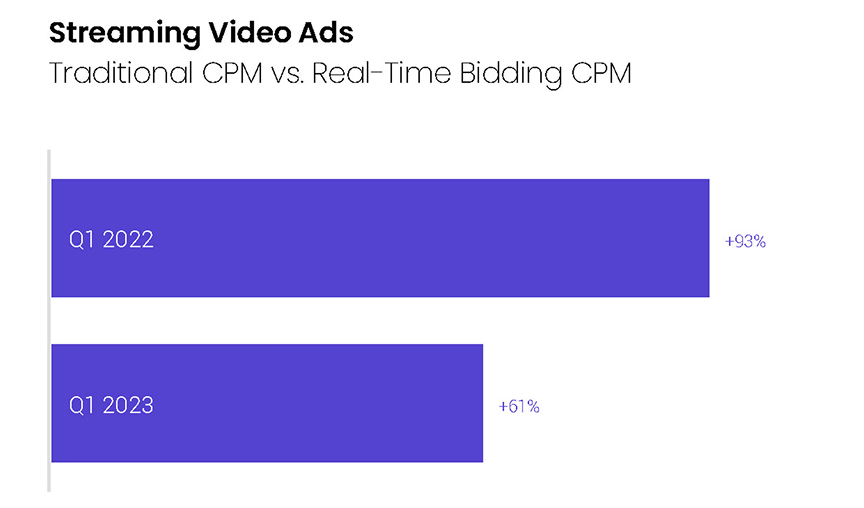 While recent weak demand in the scatter market for premium video ad inventory has narrowed the gap in CPMs for traditionally-purchased and RTB-purchased inventory, traditional CPMs were still 61% higher than RTB CPMs in Q1 2023. For advertisers that have been able to take advantage of these market conditions and have seen a material shift to premium video ad inventory, it has helped push CPM growth into positive territory at a time when most digital channels are still seeing pricing declines.