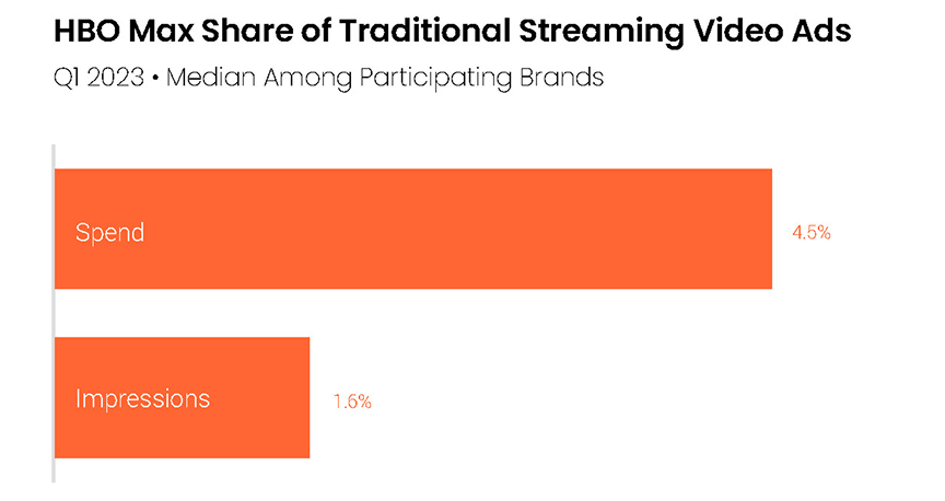 Among the brands running streaming video ads on HBO Max in Q1 2023, the platform accounted for 4.5% of traditional streaming spend, but just 1.6% of impressions. While it was still fairly early days for advertiser adoption of HBO Max ads, the platform commanded relatively high CPMs. As Warner Bros. Discovery moves to combine HBO Max with Discovery+, it will be looking to scale both its user and advertiser base.