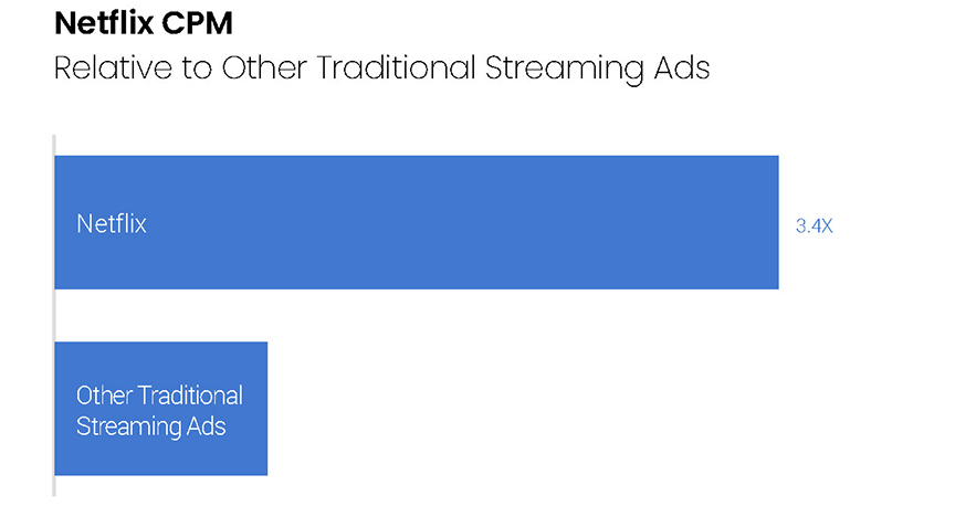 Having launched in early November 2022, Netflix’s adsupported tier reportedly reached about a million MAUs in the US after its second month. For comparison, Netflix has around 74 million total paid memberships in the US and Canada. While it is still comparably small, Netflix’s ad tier is seeing strong CPMs compared to other traditional streaming ad platforms. In Q1 2023, Netflix CPMs were 3.4 times those of other traditional streaming ad platforms.