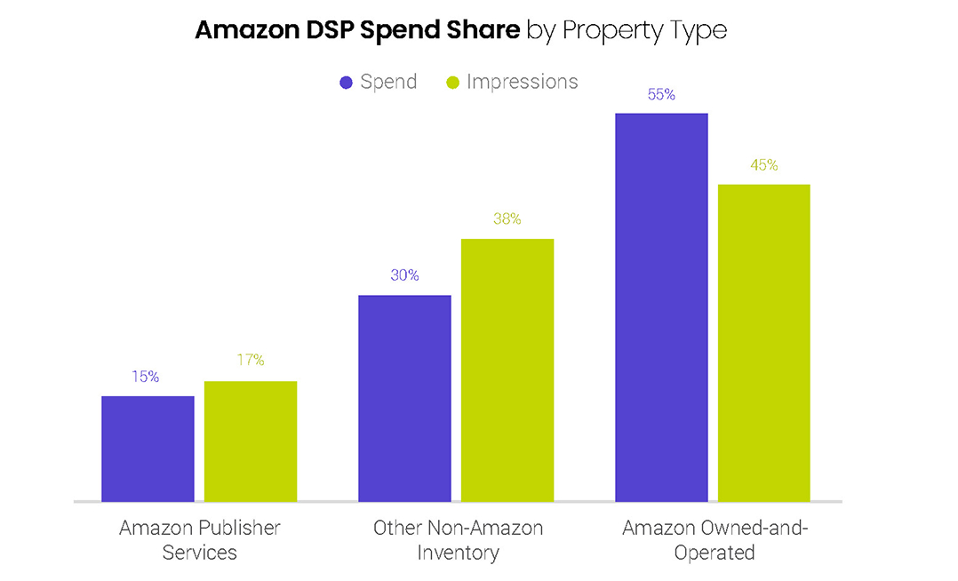 The share of total Amazon DSP spend attributed to Amazon owned-and-operated properties ticked up from 53% in Q4 2022 to 55% in Q1 2023. These properties accounted for 45% of all DSP ad impressions, as the CPM of owned-and-operated inventory outpaced that of both Amazon Publisher Services impressions as well as other non-Amazon inventory. The DSP is powerful for its ability to reach Amazon shoppers both on and off Amazon properties.